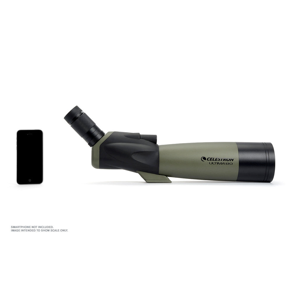 La Ultima 80 mm cuenta con un ángulo de visión de 45 ° y ofrece un aumento en la apertura desde los 65 mm, ofreciendo imágenes un 50% más brillantes. El refractor de 80 mm cuenta con una excelente óptica multicapa empaquetada en un diseño de refractor portátil y duradero y viene de serie con un ocular con zoom de 20-60x.